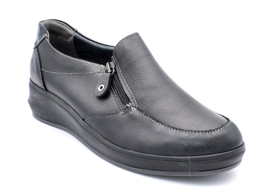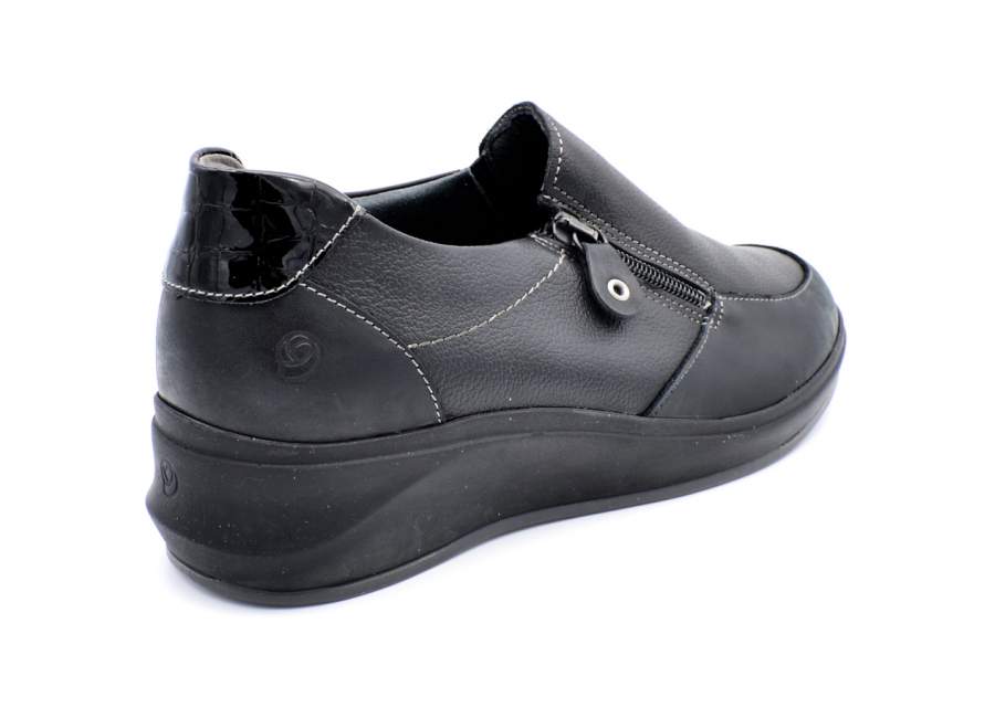 Zapato muy muy cómodo de la marca Suave. Todo fabricado en pieles muy blanditas. Mocasín de buen ajuste con elásticos en pala para favorecer el calce. Plantillas extraíbles. Combinado en varios tipos de pieles para darle un look más atrevido y casual. Horma ancho 9. Altura tacón, 3 cm aprox.