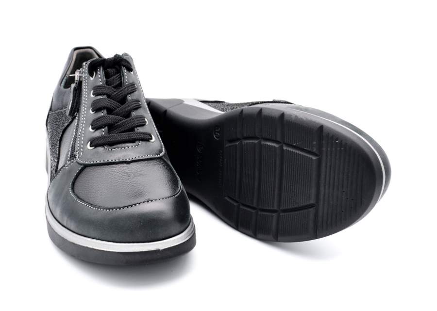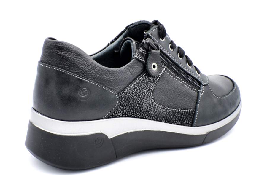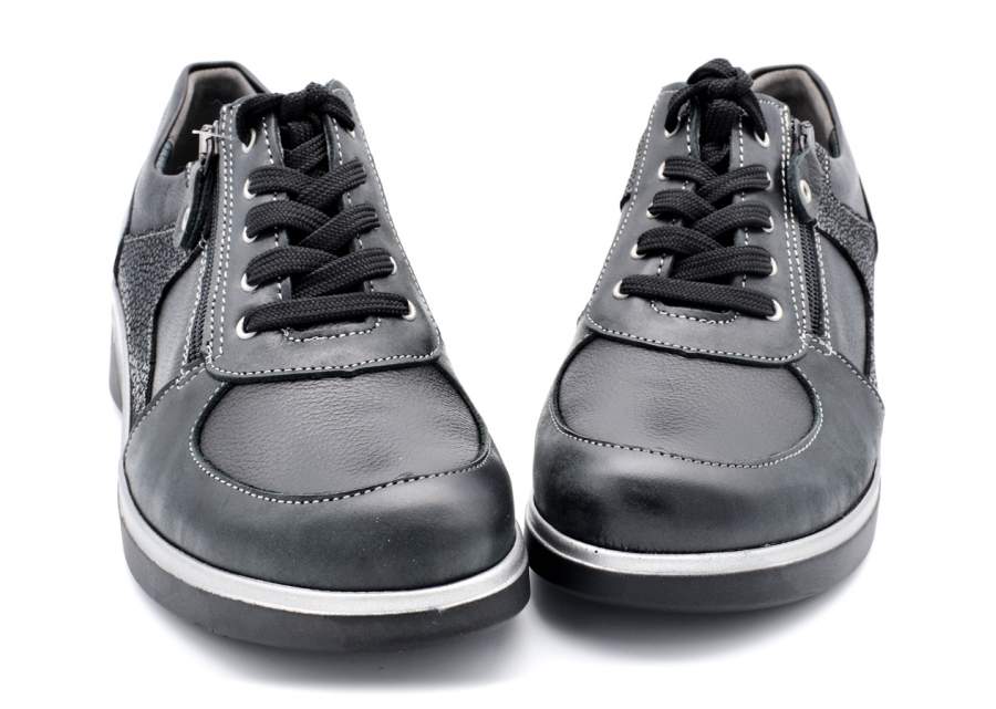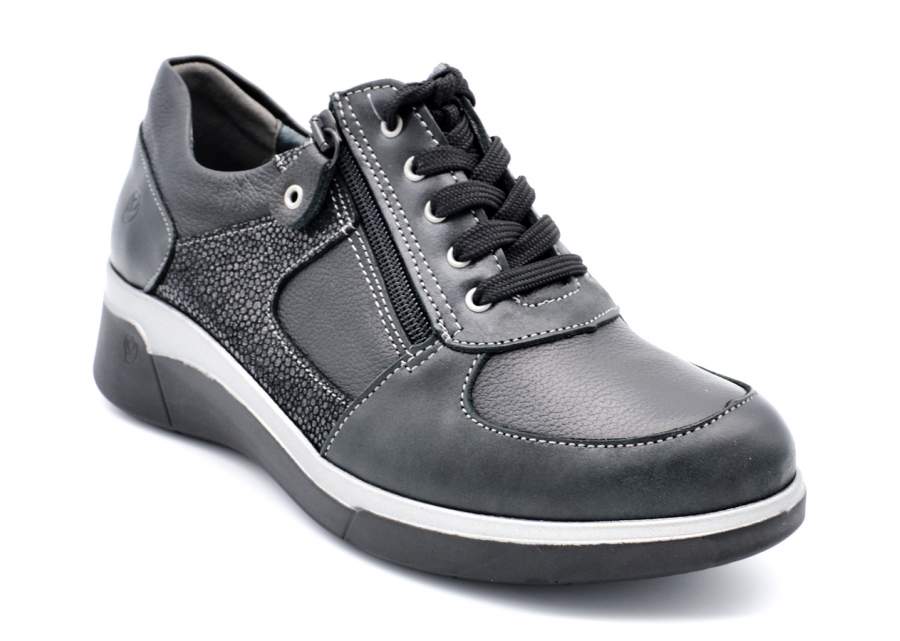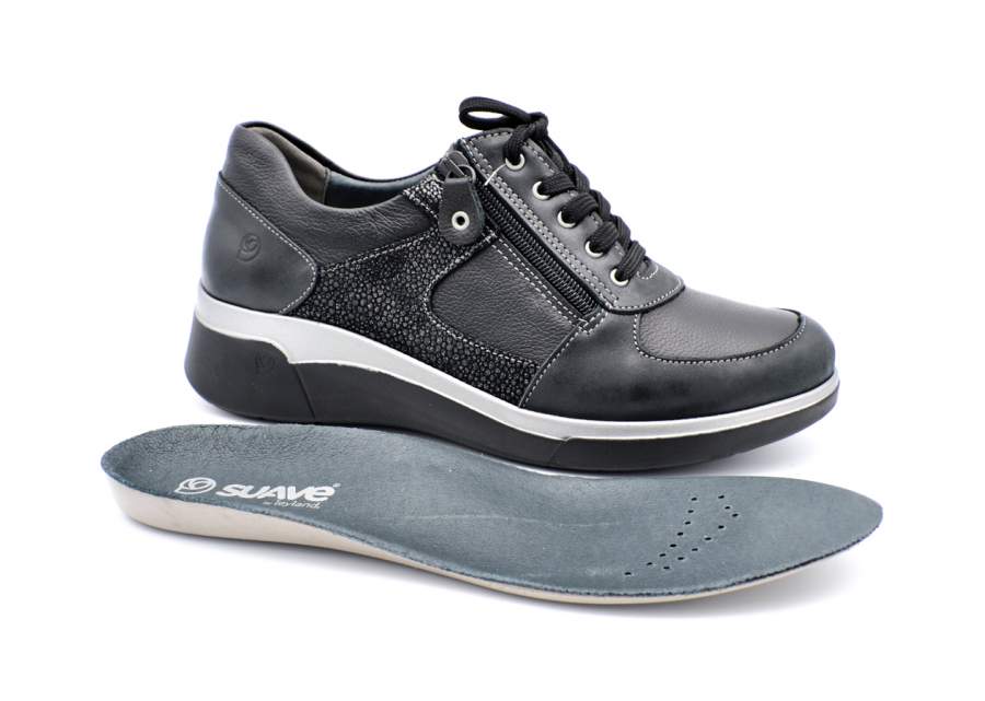 Zapato muy muy cómodo de la marca Suave. Todo fabricado en pieles muy blanditas. Cierre mediente cordones y cremallera decorativa y funcional para abrir un pocquito más en caso de necesidad. Plantillas extraíbles. Combinado en varios tipos de pieles para darle un look más atrevido y casual. Horma ancho 9. Altura tacón, 3 cm aprox.