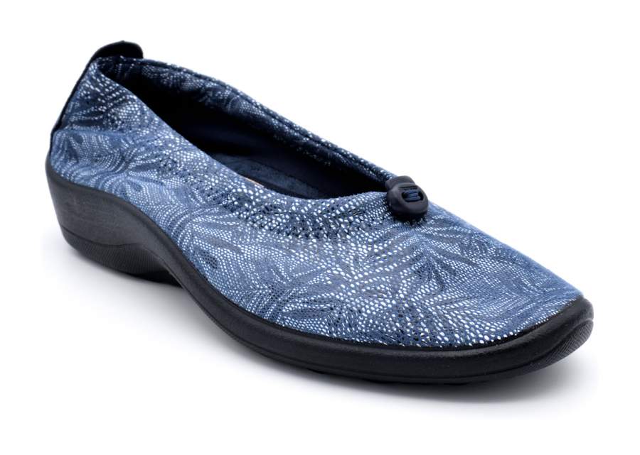 Salón de la marca Arcopédico. Todo fabricado en licra. Muy muy cómodo ya que el zapato viste el pie, es decir,se ajusta perfectamente como si fuera un vestido sin hacer presiones ni daño. Ideal para caminar y caminar e ir todo el día muy cómoda. Piso de inyección. Altura 2 cm aprox. Horma ancho 8. www.calzadossilvio.com