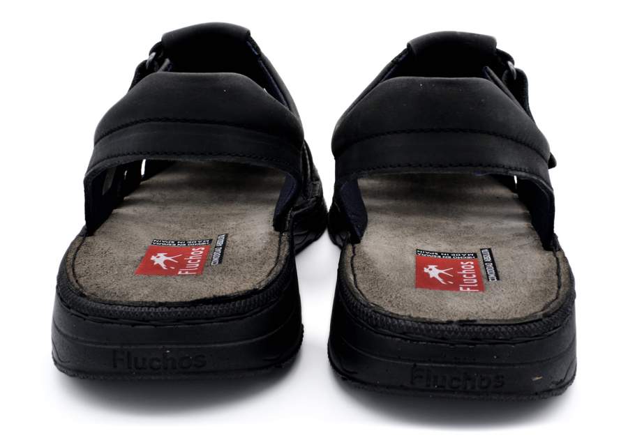 Fluchos mærke sporte sandal. Alt sammen lavet af læder af høj kvalitet. Gummisål, fleksibel, let og skridsikker. Velcro justerbar vrist rem. Homa bred, 10. Tilgængelige farver, sort og brun. Gulvhøjde i hæl, ca. 3 cm. Størrelser, fra 39 til 44.