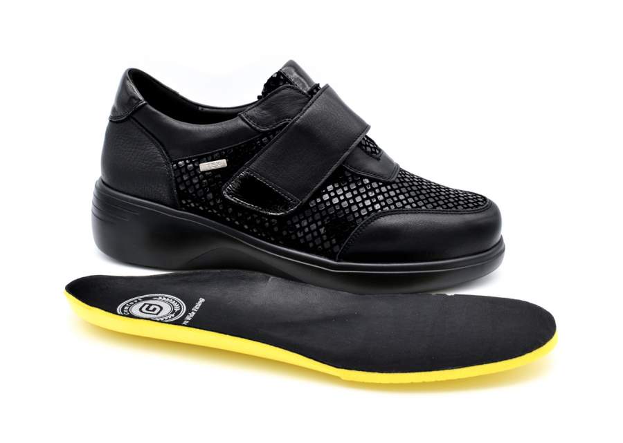 Zapato sport de velcro muy confortable de la marca G Comfort. Fabricado con pieles blanditas combinadas con licra que aportan un confort extraordinario. Buen calce,pieles y forros muy muy suaves y horma que calza muy muy bien. Piso flexible,ligero y de gran agarre. Plantillas extraibles. Horma, ancho 9. Atura de piso, 4 cm aprox.