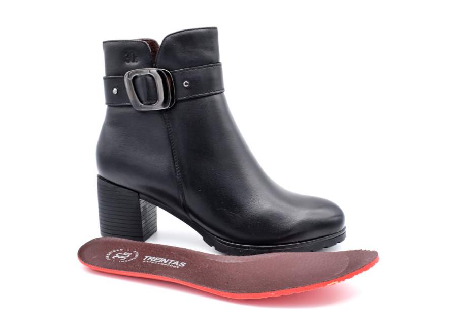 Botín de confort de la marca Treintas. Todo fabricado en piel, de calidad y blanditas. Plantillas extraibles. Botín fabricado con piel napa. Es un botín de tacón medio que tiene un look muy arreglado y de grand confort ya que la base del taón es anchita. Modelo de botín de look atractiva,moderno pero sin perder la esencia del confort. Cremallera lateral para favorecer el calzarse y descalzarse. Piso de goma, antideslizante,con buena base y de buen agarre. Horma ancho 8. Altura de piso, 5 cm aprox.