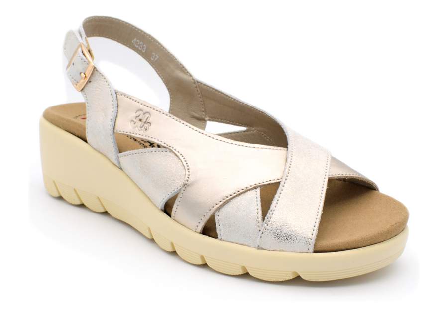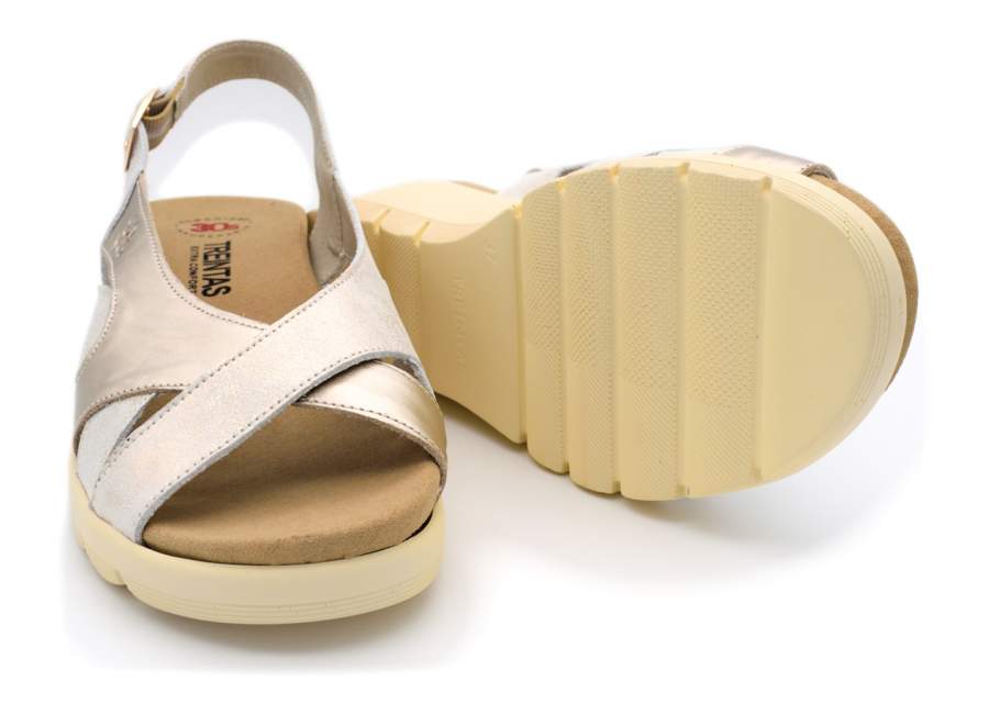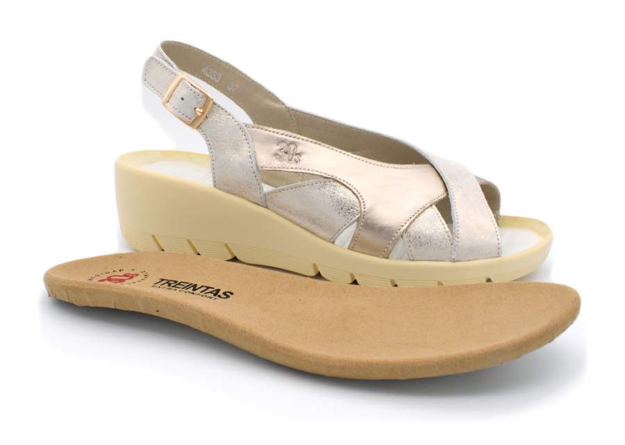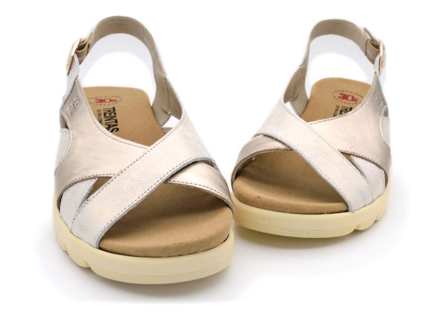 Sandal from the Thirty brand. Removable insoles. All skin. Crossed straps that greatly flatter the foot. Very comfortable last. Width 9. Floor height, 6 cm approx.