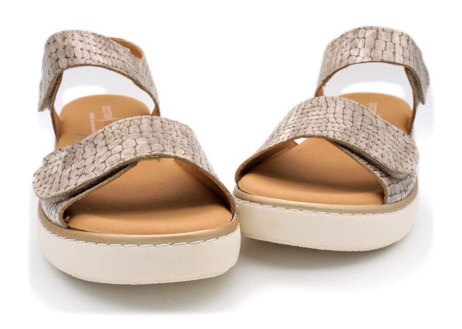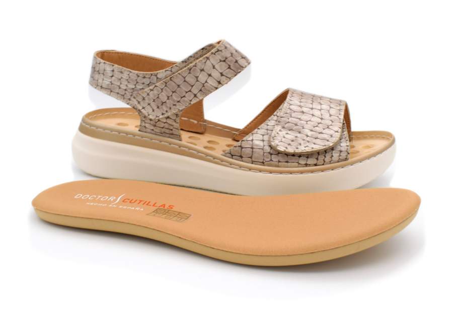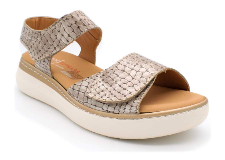 Sandalias de la marca Cutillas. Marca especializada en calzado cómodo, y pies delicados. Uno de los zapátos con mejor horma y materiales de la colección. Horma de puntera redondeada para dar un look más actual y moderno. Sandalia fabricada en piel fantasía, que junto a la horma anchita da un resultado excelente y de gran calce y confort. Tira de velcro en empeine y tobillo, que facilita el calce, y nos da la opción de ajustar el zapato perfectamente al pie. Piso de goma poliuretano flexible,ligera y de buen agarre. Uno de los mejores modelos de la colección. Horma ancho 10. Alto de piso, 4 cm aprox. Plantillas extraibles.