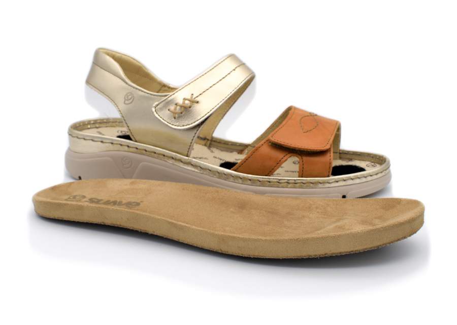 Kaksinkertaiset tarranauhasandaalit Suave-merkiltä. Kaikki valmistettu korkealaatuisesta nahasta. Ihanteellinen ortopedisten pohjallisten käyttämiseen, koska pohjalliset ovat irrotettavissa. Jos et tarvitse ortopedisia pohjallisia, sandaalin vakiopohjalliset on valmistettu lateksista suuren mukavuuden takaamiseksi. Yksi kauden uusista malleista nykyaikaisemmalla ilmeellä ja urheilullisemmalla lattialla. Irrotettavat pohjalliset. Lattian korkeus, n. 2 cm. Leveä viimeinen 8. Leveä pohja maksimaalisen mukavuuden takaamiseksi.