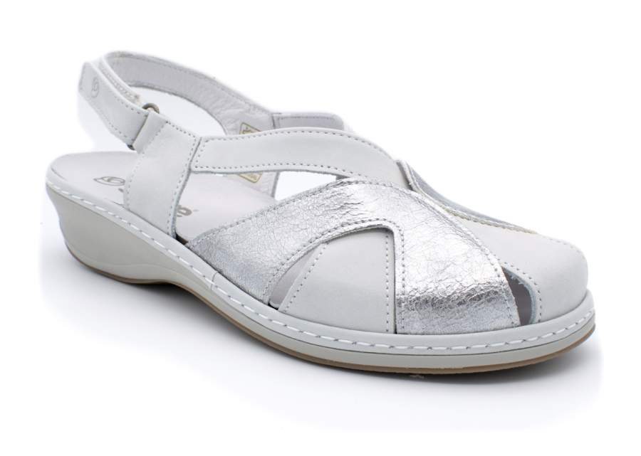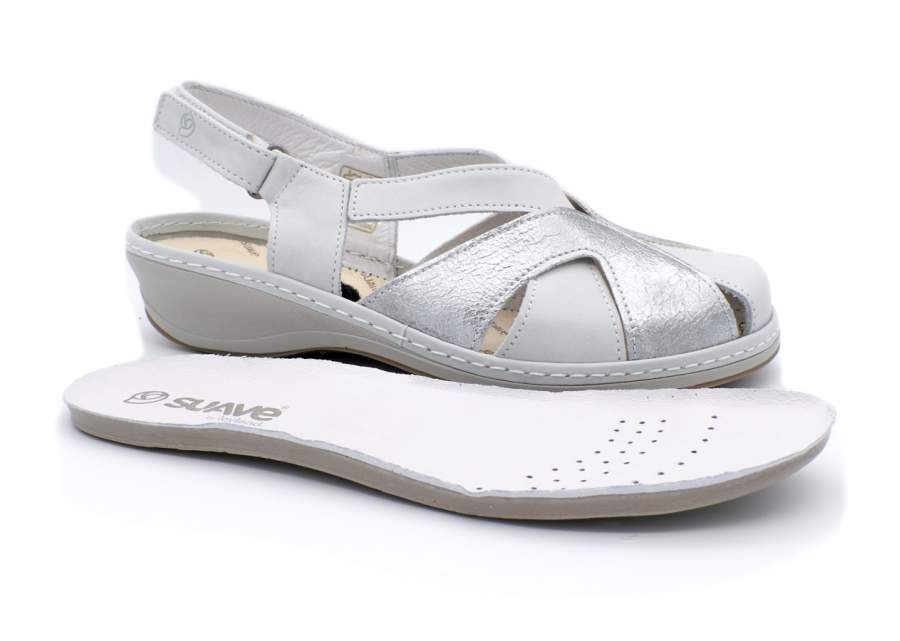 Puolisuljettu kärkikenkä Spaave-merkiltä. Se on ihanteellinen niille ihmisille, jotka eivät halua näyttää kaikkia varpaitaan, mutta samalla he haluavat käyttää hyvin tuuletettua jalkaa, jotta se hengittää oikein. Valmistettu pehmeästä ja korkealaatuisesta nahasta. Siinä yhdistyvät kaksi eriväristä nahkaa, mikä tekee kengästä houkuttelevamman. Takahihna optimaaliseen istuvuuteen. Lateksikumipohja, kevyt, joustava ja hyvällä pohjalla paremman pidon takaamiseksi.