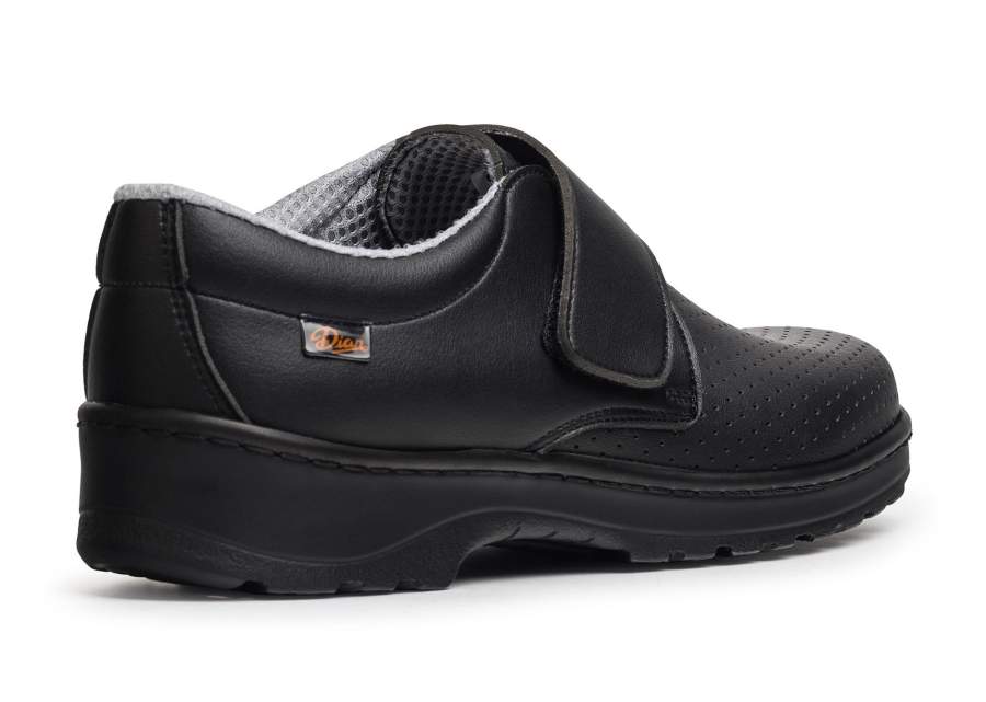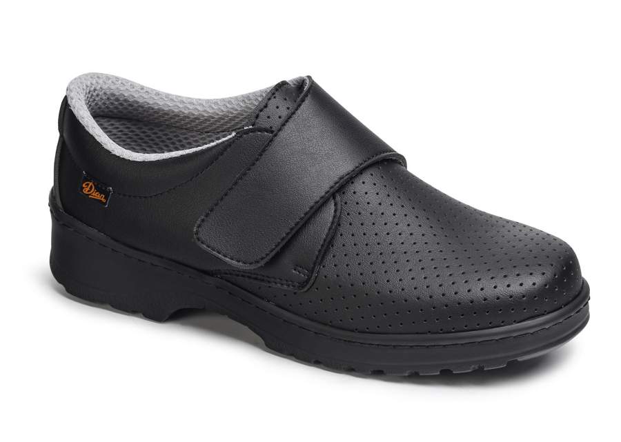 Kenkä tarrakiinnityksellä, pestävä kylmässä ja kuumassa 40º asti, D'COVER OEKO-TEX® mikrokuituleikkaus vuorattu D'DRYn® sisällä, erittäin hengittävä, erinomainen kosteuden imeytymiskyky ja nopea kuivuminen. Suora lesti pyöristetyllä kärjellä. Kantapäälaskuri, jonka kovuus on riittävä pitämään calcaneus. Pehmustettu kangaspohjallinen polyuretaanivaahdolla antibakteerisella käsittelyllä ja aktiivihiilellä. Antibakteerinen kaksivärinen polyuretaanipohja, luistamaton ja korkea kerroin kuivassa ja märässä, pohjassa uurretut kohokohdat nesteiden poistumisen helpottamiseksi. Valmistettu kokoamalla ja turvaompelemalla vahvistamaan pohjan liitosta kengän leikkaukseen.
