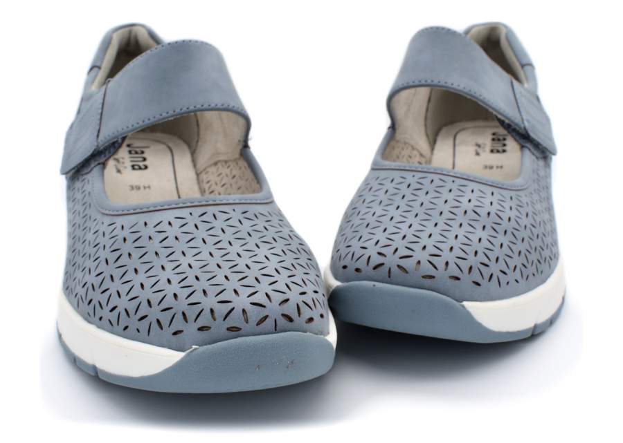 Très confortables Mary Janes de la marque Jana. Tige hachée pour donner un look plus actuel et faciliter la respirabilité. Fermeture velcro sur la lame. Semelles intérieures amovibles. Revêtement de sol en polyuréthane, base moderne et plate. Sol antidérapant et bonne base.