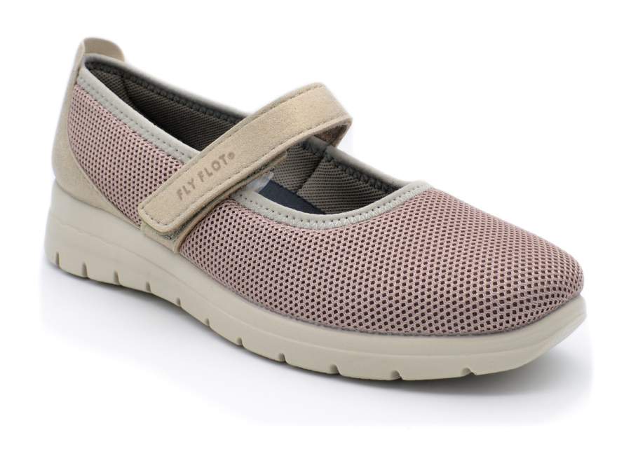 Mary Jane sportive del marchio di comfort FlyFlot. Solette estraibili. Scarpa realizzata con tessuto elasticizzato per il massimo comfort. Nuovo concetto FlyFlot che è popolare e genera successo di vendite. Suola flessibile e leggera con una base larga per guadagnare stabilità. Forma larga, 8. Altezza a terra nel tacco, 3 cm circa.