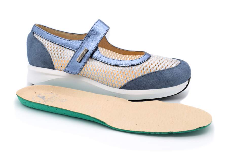 Scarpa Mary Jane del marchio CalzaFarma. Super confortevole. Tutti materiali di prima qualità. Solette estraibili. Regolazione del cinturino in velcro sul collo del piede per ottenere la migliore sensazione di set scarpa/piede. Pavimento ampio, comodo e aderente.