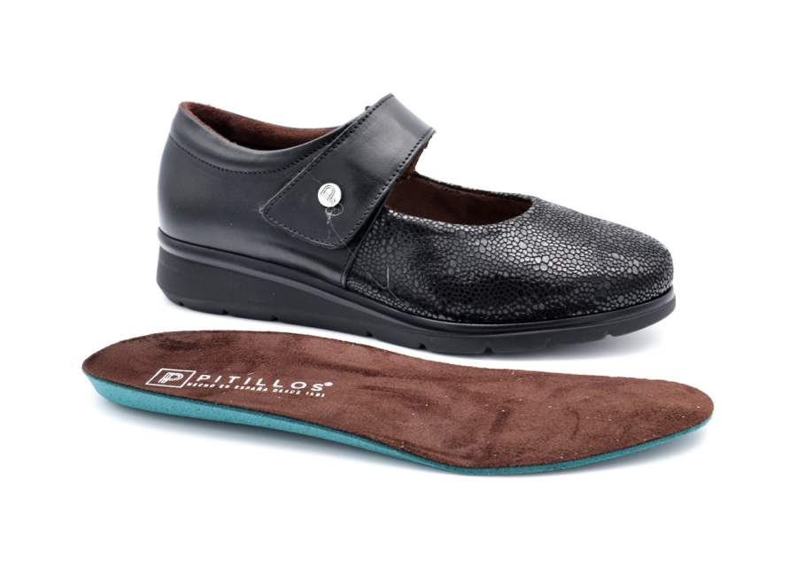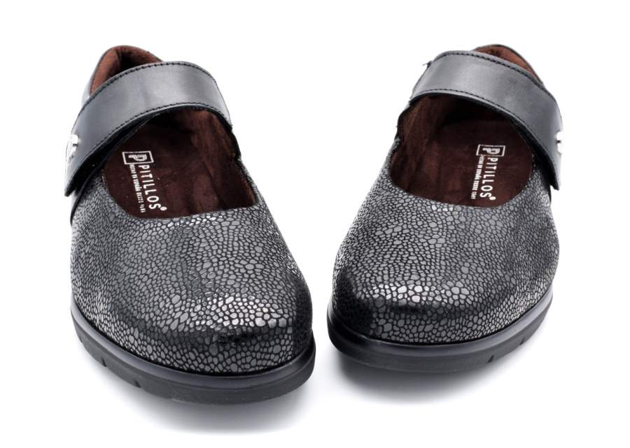 Zapato merceditas de la marca Pitillos. Fabricado en piel napa combinada con fantasía. Forro de tejido ideal para mantener el calorcito y que el pie transpire perfectamente. Piso con buena base, antideslizante y flexible. Plantillas extraíbles. Horma ancho 9. Altura piso 4 cm.