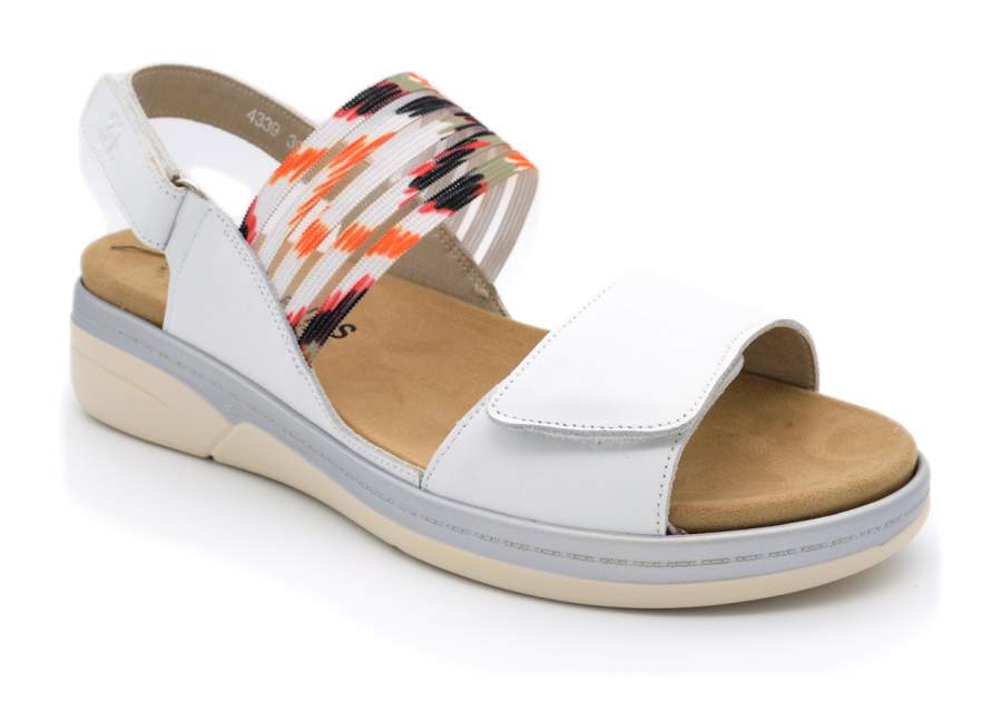 Sandalo del marchio Thirty. Tutti realizzati in pelle di alta qualità, taglio, fodera e fodera del sottopiede. Pavimento in gomma antiscivolo a forma di cuneo. Realizzato in nappa. Regolazione in velcro sulla tomaia e collo del piede elastico. Solette estraibili. Largo ultimo 8. Altezza del pavimento, circa 4 cm.