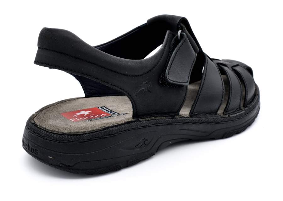 Sporte sandaal van het merk Fluchos. Allemaal gemaakt van hoogwaardig leer. Rubberen zool, flexibel, licht en antislip. Met klittenband verstelbare wreefband. Homa breed, 10. Beschikbare kleuren, zwart en bruin. Vloerhoogte in de hak, ca. 3 cm. Maten, van 39 tot 44.