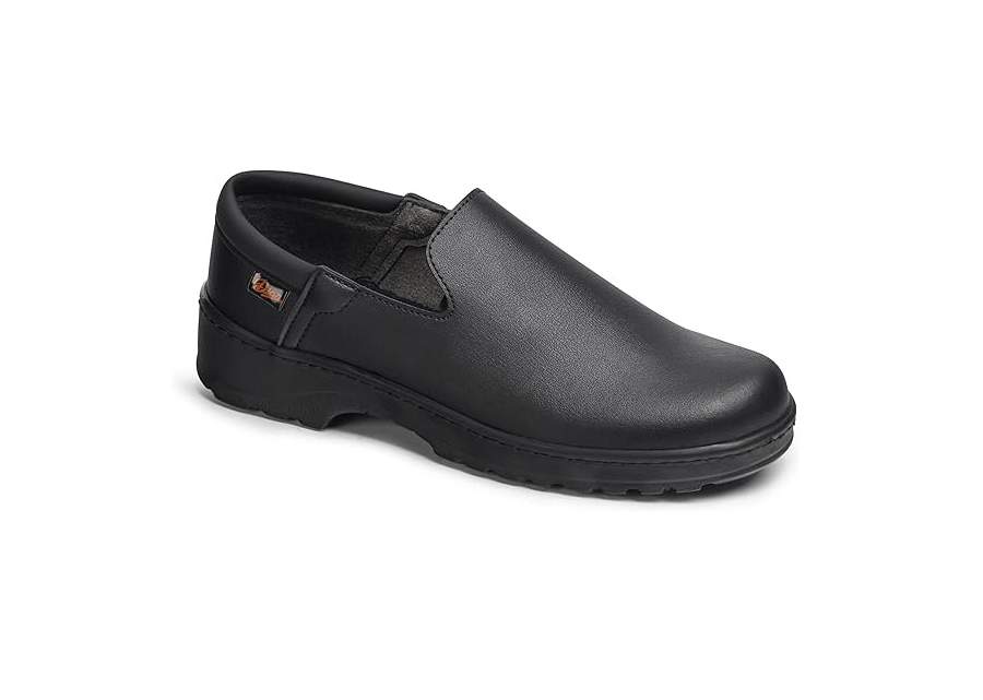 Sapato antiderrapante de grande eficiência em seco e molhado com saliências nervuradas na sola para facilitar a evacuação de líquidos evitando escorregar em pisos molhados. Corte em microfibra D'COVER Oekotex respirável e lavável até 40º com acolchoamento no calcanhar para evitar que o sapato escorregue ao caminhar ou em posturas extremas de flexão, protegendo o pé do atrito, palmilha interna de espuma de poliuretano acolchoada com tratamento anti-bacharelado. Confeccionado por meio de costura de segurança e corte de sola antibacteriano para garantir a união das peças ao submetê-las a lavagens a quente. Tamanhos de 34 a 48.