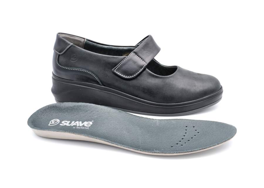 Zapato muy muy cómodo de la marca Suave. Todo fabricado en pieles muy blanditas. Merceditas de buen ajuste y corte escote redondeado. Plantillas extraíbles. Combinado en varios tipos de pieles para darle un look más atrevido y casual. Horma ancho 9. Altura tacón, 3 cm aprox.