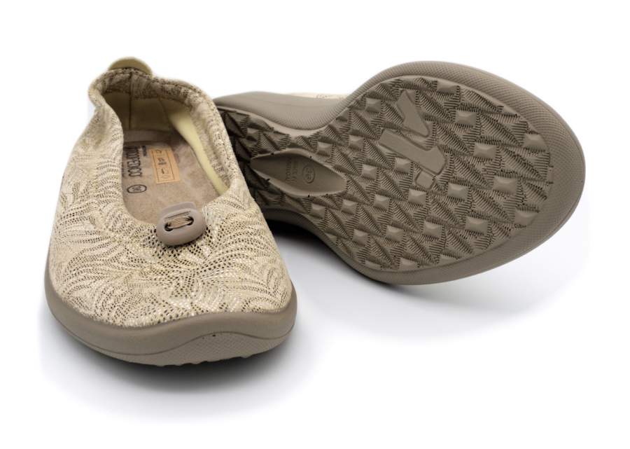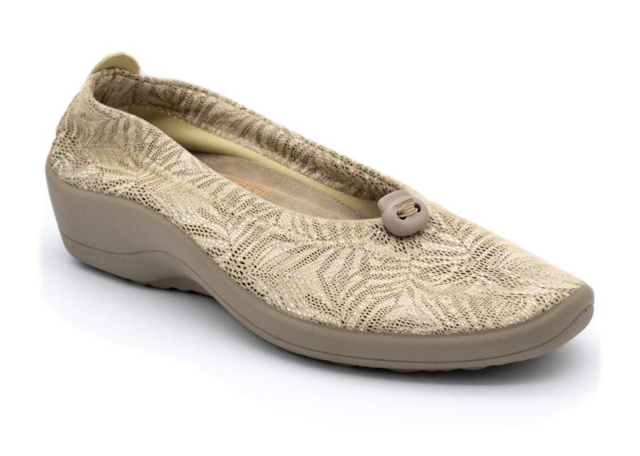 Salón de la marca Arcopédico. Todo fabricado en licra. Muy muy cómodo ya que el zapato viste el pie, es decir,se ajusta perfectamente como si fuera un vestido sin hacer presiones ni daño. Ideal para caminar y caminar e ir todo el día muy cómoda. Piso de inyección. Altura 2 cm aprox. Horma ancho 8. www.calzadossilvio.com