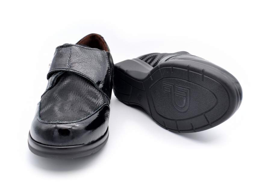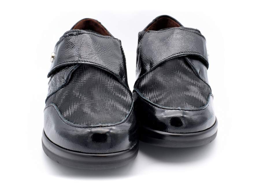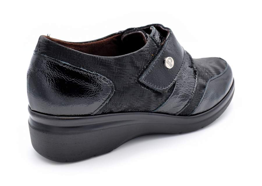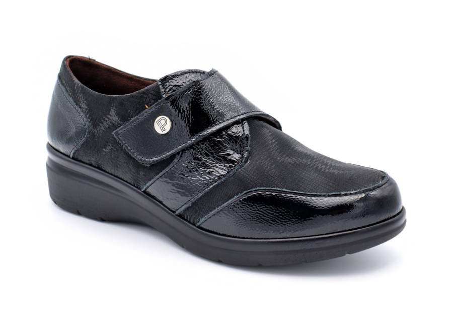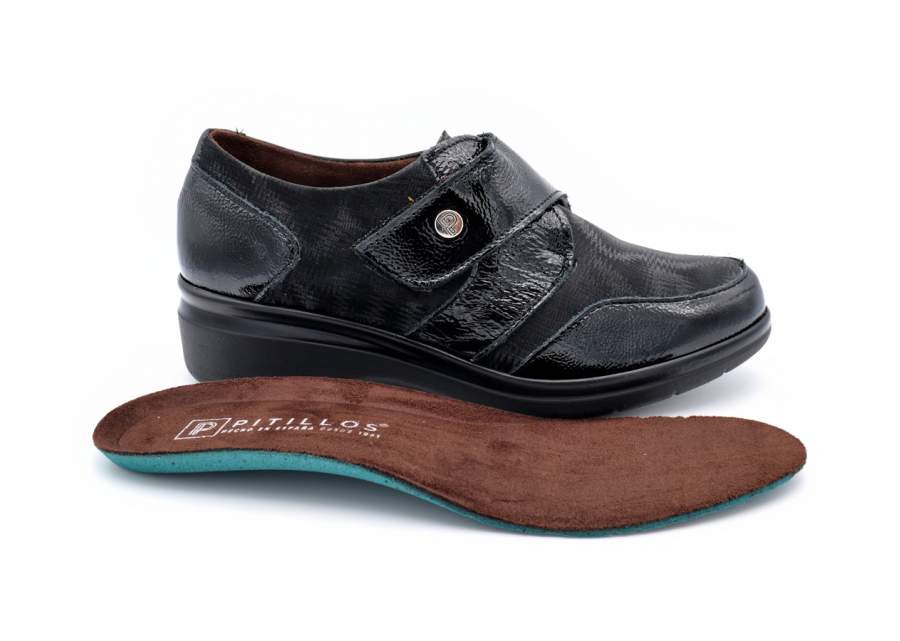 Zapato velcro de la marca Pitillos. Zapato sport ideal para el día adía, el trabajo,caminar... Muy confortable y fabricado con licra y pieles blanditas y suaves. Velcro en empeine para favorecer el calce, y el ajuste correcto del pie al zapato. Combina piel charol y fantasía. Piso antideslizante,flexible y de buen agarre. Horma ancho, 8.