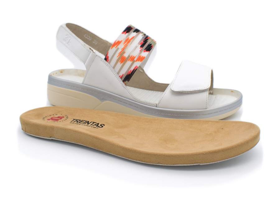 Sandalia de la marca Treintas. Todo fabricado en piel de alta calidad, corte, forro, y forro de plantilla. Piso de goma antideslizante en forma de cuña. Fabricada en piel napa. Regulación mediante velcro en pala, y en empeine elásticos. Plantillas extraibles. Horma ancho 8. Altura de piso, 4 cm aprox.